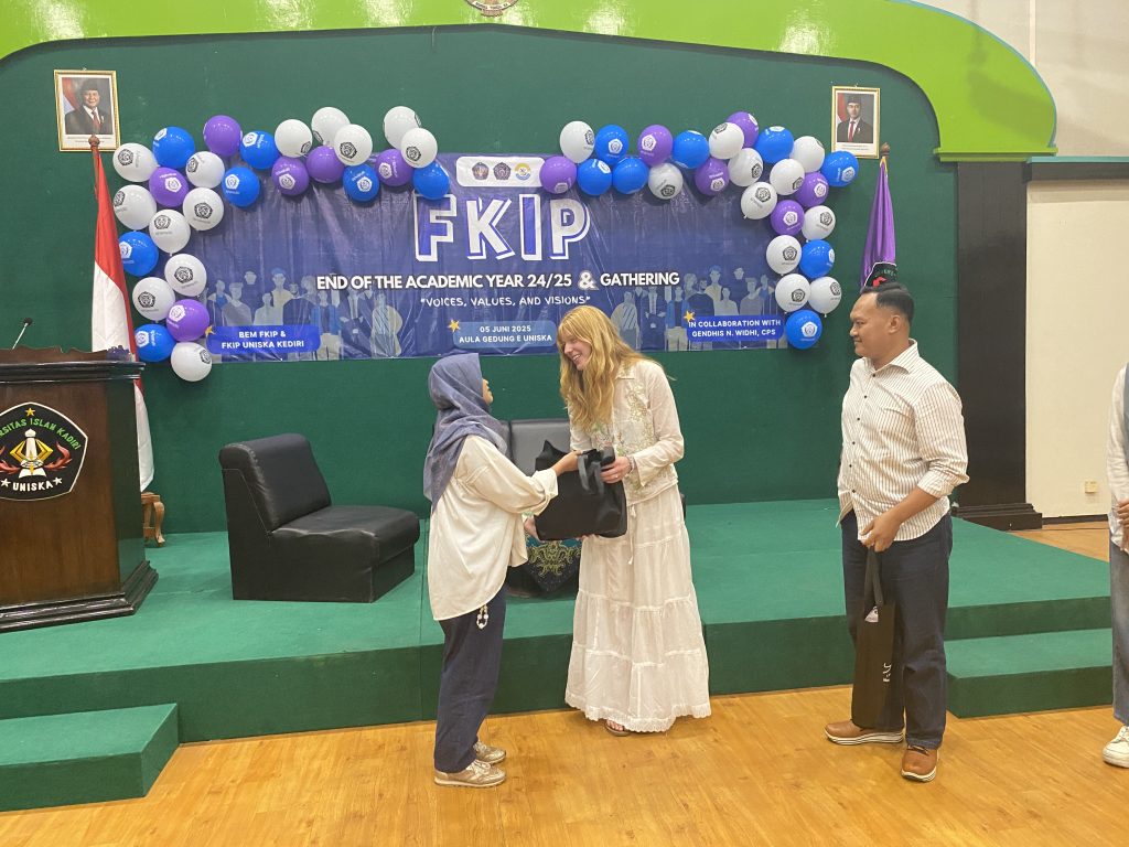 Salah satu sesi istimewa dalam acara ini adalah sharing session bersama Sadie Nolan, mahasiswa semester enam dari University of Richmond, Virginia, Amerika Serikat, yang saat ini mengikuti Intercultural Short Training Program di Basic English Course (BEC) Pare, mitra resmi FKIP UNISKA Kediri.