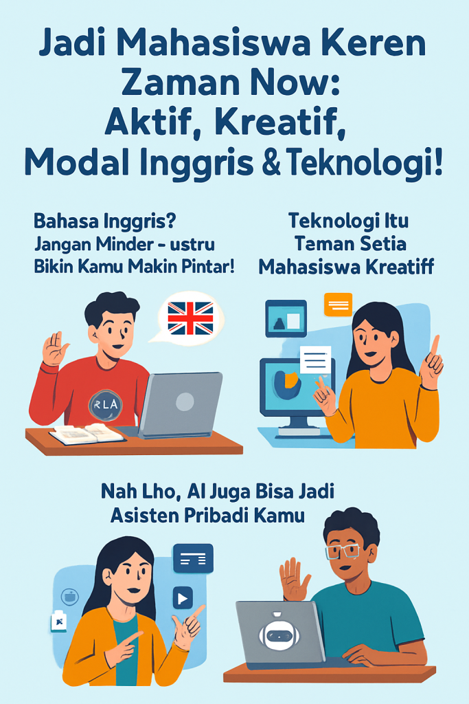 Jadi, buat kamu para mahasiswa zaman now, jangan pernah remehin kekuatan bahasa Inggris dan teknologi. Apalagi sekarang ditambahin amunisi canggih bernama AI. Dengan menguasai ketiganya, kamu nggak cuma jadi mahasiswa yang aktif dan kreatif di kampus, tapi juga siap menghadapi segala tantangan dan meraih peluang di dunia yang semakin kompetitif ini. Yuk, manfaatkan semua sumber daya yang ada, terus belajar dan berkembang, biar kamu jadi mahasiswa yang nggak cuma keren, tapi juga bermanfaat!